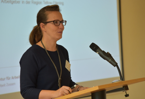 In ihrem Vortrag berichtete Anke Lehmann vom Arbeitgerberservice der Arbeitsagentur über die zahlenmäßige Entwicklung des Arbeitsmarktes in den letzten 10 Jahren. Die Arbeitslosenquote hat sich in dieser Zeit halbiert und die frei gemeldeten Stellen verdreifacht. Von Interesse waren auch die gebotenen Förderleistungen für Arbeitgeber für Einstiegsqualifizierungen und ausbildungsbegleitende Hilfen bei Jugendlichen oder Einarbeitungs- und Eingliederungszuschüsse. Für die Qualifizierung von Beschäftigen gab es aktuelle Infos zum Programm WeGebAU, bei dem Arbeitgeber bis zu 75 % der Lehrgangskosten gefördert bekommen.