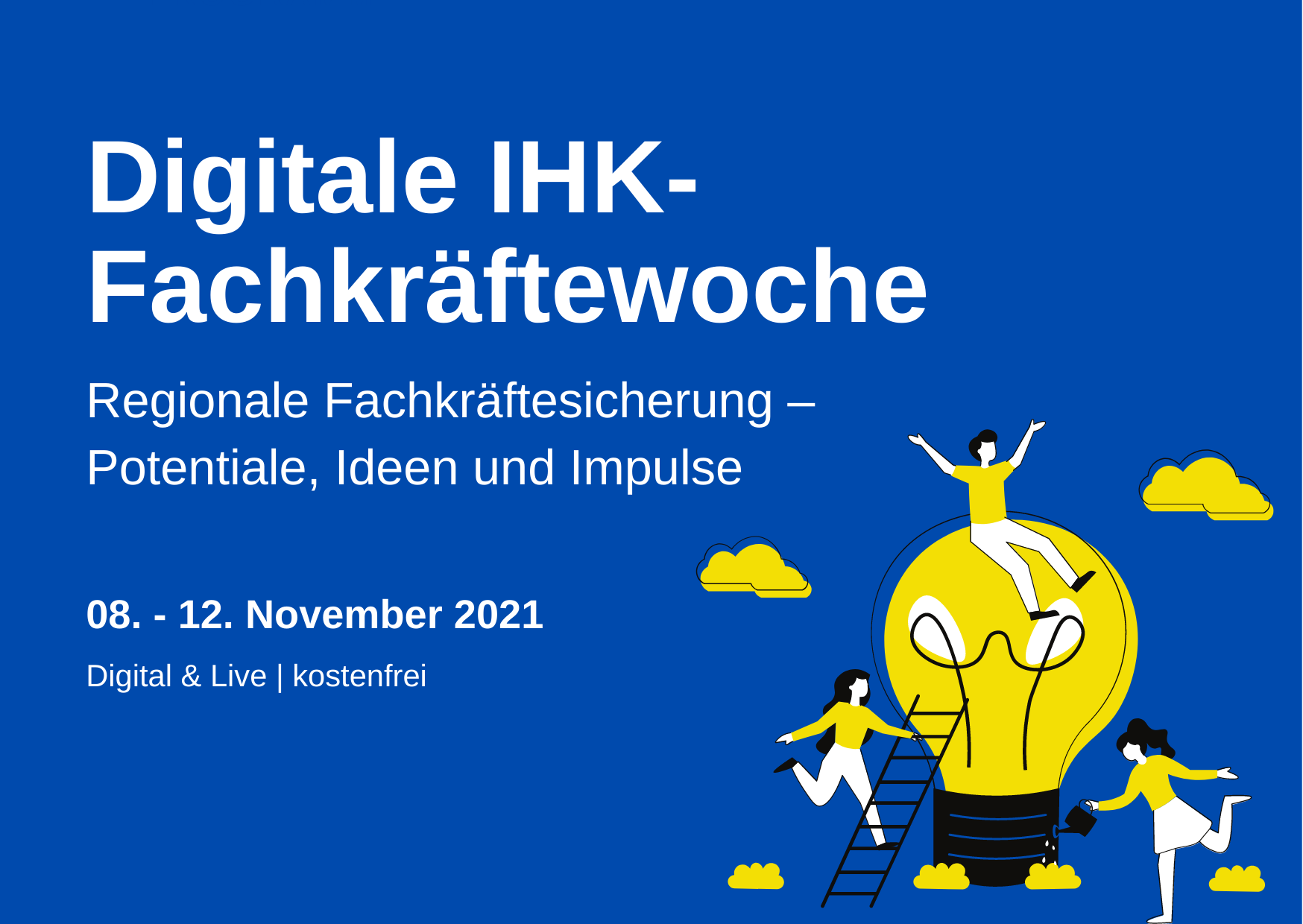 In der Woche vom 8. bis 12. November 2021 findet die Digitale IHK Fachkräftewoche zum Thema Tourismus statt. In 21 Workshops verteilt über die Woche finden Sie zahlreiche Ideen und Impulse zur regionalen Fachkräftegewinnung und – sicherung. Themen sind u.a.: