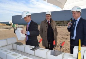 "Wir bauen nicht auf Sand in Brandenburg." Diese Worte gab Dr. Peter Kohnert, Abteilungsleiter Europa und Internationales im Ministerium für Wirtschaft und Europaangelegenheiten, seinem Stein mit auf den Weg. Als Gast der Landesregierung bei der Grundsteinlegung zum neuen Brenner-Testzentrum für Gasturbinen der Firma Siemens am 27. September war es ihm besonders wichtig, dass diese Großinvestition auf einem sicheren Fundament steht. Nachdem im Jahr 2010 bereits ein Energy Logistic Center mit einem Investitionsvolumen von 5 Millionen Euro in Ludwigsfelde entstand, findet nun ein neues Mitglied der Siemens Familie in dessen direkter Nachbarschaft im Preußenpark sein Zuhause. 25 neue Arbeitsplätze sollen hier geschaffen werden. Das Testzentrum gehört zum Standort des Gasturbinenwerkes Berlin-Moabit, das mit der Fertigung der weltweit größten und leistungsstärksten Gasturbine ein echter Weltmeister ist. Aber, so der Siemens-Mitarbeiter Herr Rosenfeld, der Größe sind Grenzen gesetzt. Um den Wirkungsgrad weiter zu erhöhen ist es notwendig die Brennertechnik zu verbessern. Genau dazu sollen die Tests an Brenner-Prototypen auf den siemenseigenen Testständen (drei sind bereits genehmigt, für insgesamt sechs gibt es die Option) beitragen. Sie sollen zum einen unabhängiger machen von externen Partnern, deren Testkapazitäten nicht mehr ausreichend sind, zum anderen das firmeneigene Know-How besser schützen, erklärte Dr. Wolfgang Konrad, Leiter Business Segment Gasturbinen des Siemens Energy Sektors. "Mit dem Testzentrum für Gasturbinen-Brenner erfolgt nun eine beachtliche Investition im Bereich Forschung & Entwicklung. Wir versprechen uns innovative Ideen und Synergie-Effekte, die allen Gasturbinenprodukten der Siemens AG zugute kommen. Denn für uns als technologischer Standort ist Innovation das Lebenselixier", ergänzte er. Sein Dank galt allen Projektbeteiligten, besonders aber dem Land Brandenburg und der Stadt Ludwigsfelde. Die erwiderten das Kompliment. Dr. Kohnert bezeichnete den Bau des neuen Clean Energy Centers als exzellente Entscheidung. Brandenburg sei in punkto erneuerbare Energien anderen Regionen der Bundesrepublik und auch den Vorgaben der Regierung um Jahre voraus. Konventionelle Technologien wie z.B. hocheffiziente Gasturbinen seien eine wichtige Brückentechnologie für die Energiewende und der Standort Ludwigsfelde daher genau richtig. Andreas Igel, der Vorsitzende der Stadtverordnetenversammlung Ludwigsfelde überbrachte die besten Grüße und Wünsche des Bürgermeisters und äußerte seine Freude darüber, dass Siemens die hervorragenden Bedingungen und das bestmögliche Umfeld in Ludwigsfelde erkannt hat. Der Industriestandort habe aufgrund seiner 70jährigen Erfahrung ein sehr gutes Fachkräfteniveau. "Hier werden Innovation und Industrietradition verbunden", lobte er und freute sich über die neue Investition als immense Stärkung des Energietechnischen Clusters der Region. Beim eigentlichen Akt der Grundsteinlegung durfte er auch den ersten Stein setzen. Für ein gutes Fundament bat Wolfgang Konrad darum, jeden Stein mit einem Wert zu begleiten. Andreas Igel wählte "Innovation", Dr. Kohnert "Forschung und Entwicklung über Berlin hinaus - nach Brandenburg", Wolfgang Konrad die "Kooperation zwischen Berlin und Brandenburg, die durch Siemens in Ludwigsfelder verkörpert wird" und Projektleiter Dr. Ralf Obertacke fand, dass die "großartige Investition das Ja zum Standort bestätige". Weitere Vertreter von Siemens, z.B. aus dem Service und dem Verkauf setzten ebenfalls Steine ein. "Der Grundstein den wir heute legen ist ein Schritt in Richtung Zukunft" - dieser Satz von Wolfgang Konrad wird die Entwicklung des Clean Energy Centers, das im Oktober 2014 in Betrieb genommen werden soll, begleiten. M.R.